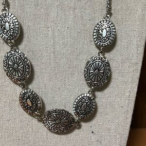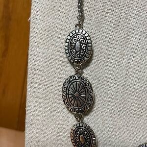 This elegant necklace features striking black stones set in a sleek silver chain, perfect for adding a touch of sophistication to any outfit. Reversible. From a smoke free home.🏠