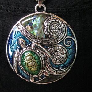 NWT Scroll and Vine Abalone Turtle 18" Necklace