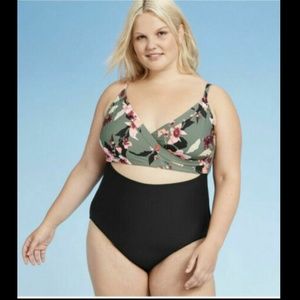 NWT Sea Angel Floral Cut Out‎ One piece Swimsuit [ PLUS SZ 2X ]