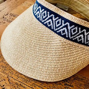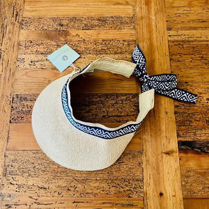 NWT Sea & Grass straw visor with ribbon tie one size packable natural blue white