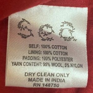 Materials: Shell & Lining: 100% Cotton, Yarn: Wool Blend, Padding: 100% Polyester