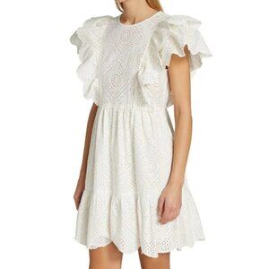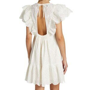 NWT Sea New York Off White Vienne Flutter Sleeve Tie Back Eyelet Mini Dress
