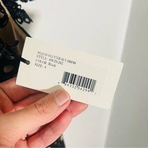 This Sea New York Shelby dress blends modern femininity with sleek, evening-ready polish. The black sequin eyelet detailing adds dimension and texture, while the ruffled neckline and flutter sleeves soften the silhouette. It’s an effortlessly glamorous piece perfect for cocktail parties, weddings, or upscale nights out—capturing the quiet-luxury meets statement sparkle trend.