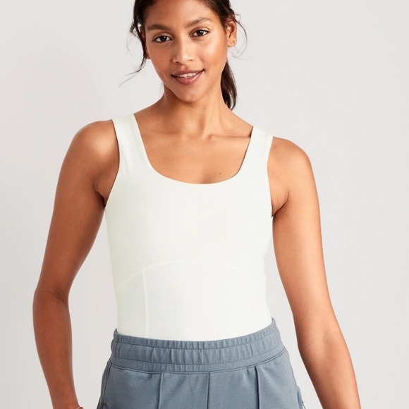 Lined, built-in shelf bra, with front & back Powermesh lining and soft, removable cups for shaping & secure coverage.