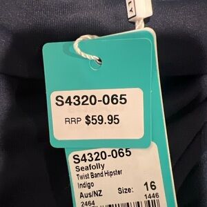 NWT Seafolly Women's Twist Band Hipster Full Coverage Bikini Bottom. Indigo
