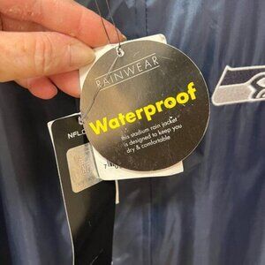 Show off your team spirit with this NWT Seattle Seahawks NFL Waterproof Jacket. The size XL jacket features a snap/zippered closure and a hood to keep you warm and dry.