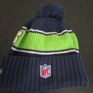 NWT- Seattle Seahawks New Era “Removable” Pom NFL Logo Beanie Hat Fleece Lined