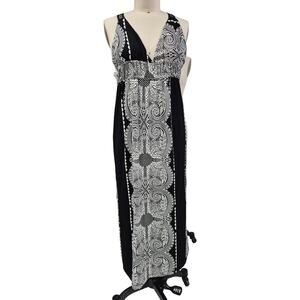 NWT Second Skin Lace Razor Back Polyester Maxi Dress Black/White Sz L