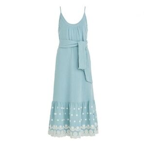 When comfort and style are key, this lightweight double cotton gauze dress is just the one. Made of breezy cotton, it's fitted with a sash belt and delicate embroidery at the flowy hemline.