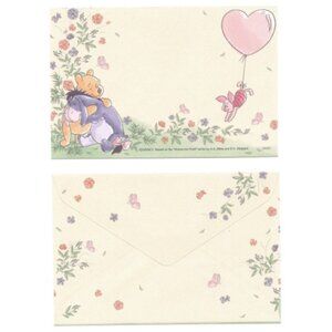 FREE GIFT is an adorable mini stationery set featuring Winnie the Pooh hugging Eeyore and sweet little Piglet floating with a heart-shaped balloon! 8 Letter Papers (14 x 9.4 cm approx.) and 4 envelopes (14.8 x 9.8cm approx.)