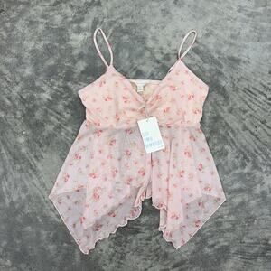 NWT See You Monday Womens M Light Pink Ditsy Floral Pattern Baby Doll Top Straps