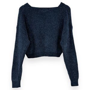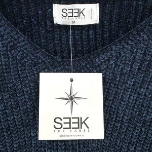 NWT Seek The Label Navy Blue Relaxed Fit Cozy Cropped V-Neck Knit Sweater sz M