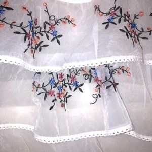 Seen Worn Kept top for Anthropolgie. Amazing white flutter top with delicate embroidered flowers. Back has a tassel tie closure.