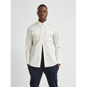 NWT Selected Homme Water Repellent Poplin Shirt Convertible Button Down Egret L
