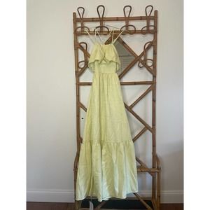 Beautiful, fun, light dress. Waist is elastic and about 25” at the smallest. Selling because it was a little too big. New with tags.
