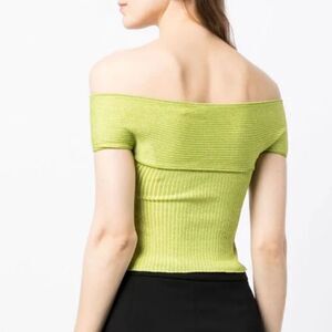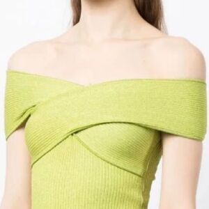NWT Self-Portrait Draped Off-Shoulder Top Small Lime Metallic