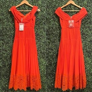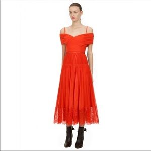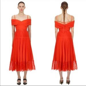 NWT Self-Portrait Off-Shoulder Pleated Lace Midi Dress