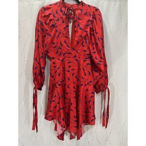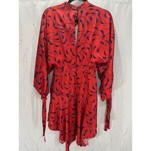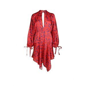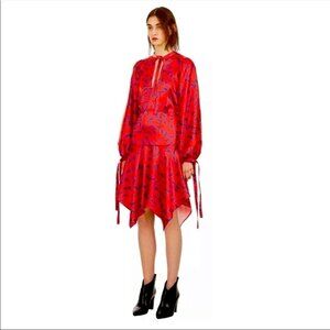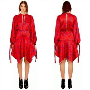 NWT Self-Portrait Red Satin Print Midi Dress $465
