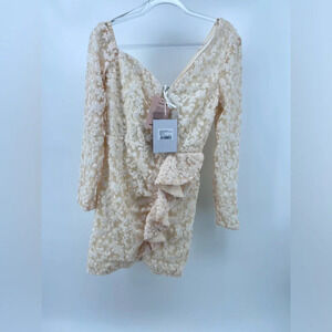 NWT Self-Portrait Sequin Ruffle Mini Dress Ivory White Size 6