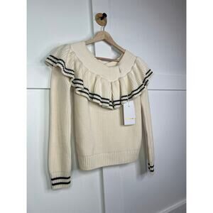 NWT Self-Portrait Striped Off Shoulder Ribbed Ruffled Cream Long Sleeve Sweater