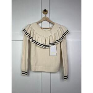 NWT Self-Portrait Striped Off Shoulder Ribbed Ruffled Cream Long Sleeve Sweater