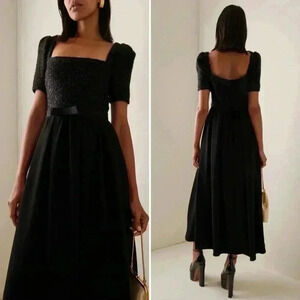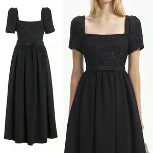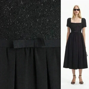NWT Self-Portrait Tinsel Tweed Midi Dress Black Size 2