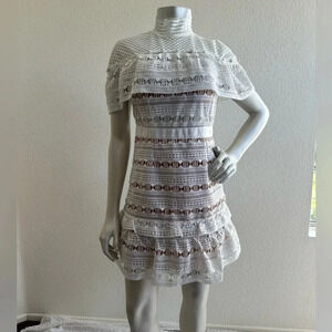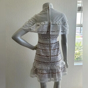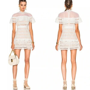 NWT Self-Portrait Yoke Ruffled Mini Dress White Lace Frill Dress