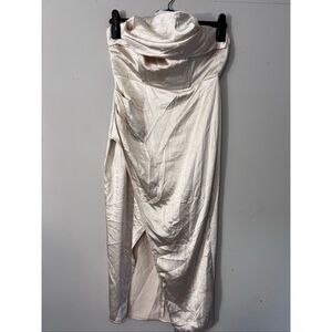 NWT Cowl Bust Strapless Midi Dress Champagne
