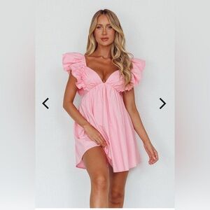 NWT Selfie Leslie Marlina Ruffle Sleeve Babydoll Mini Dress Soft Pink