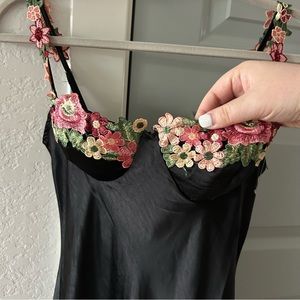 NWT Selfie Leslie Rose Garden Floral Appliqué Satin Midi Dress