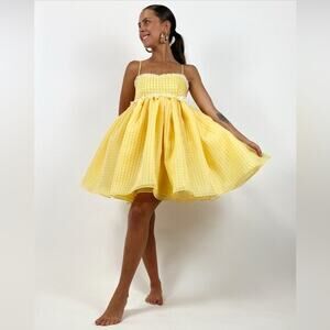 NWT Selkie the Rosebud Mini Dress Size M buttercream Gingham #1J504