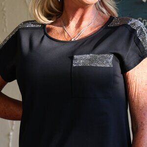 NWT Sequin Chic Black Short Sleeve Knit T-Shirt Dress