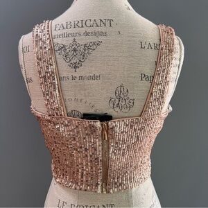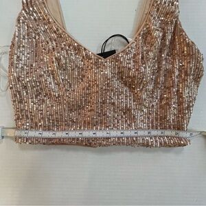 NWT Sequin Embellished Light Gold Crop Top with gold back zipper size M