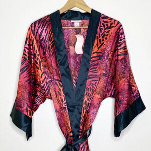 NWT Serenada Pink Red Animal Print Silky Satin Robe Kimono Wrap 14/16 0X Leopard