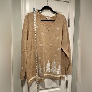 NWT Serengeti Size 2X Tan White Embroidered Snowflake Pine Tree Knit Tunic Top