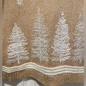 Tan knit with embroidered cream pine tree and snowflakes
