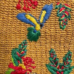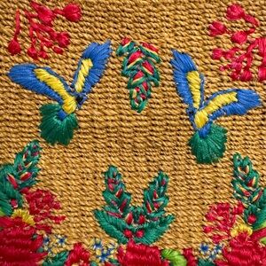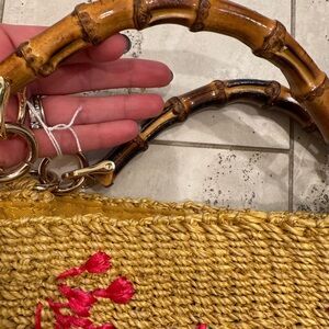 NWT Serpui Fancy Macaw Bird Tropical Woven Straw Handbag Bamboo Handle