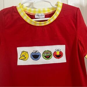 Embroidered Sesame Street characters on front