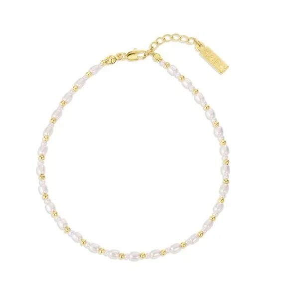 NWT Set & Stones Shelly Pearl and 14k Gold Anklet