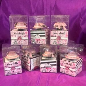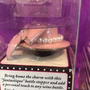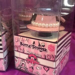New in boxes, set of 10 Parisian pink hats with pearls wine bottle stoppers.
