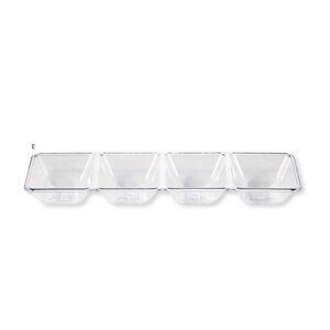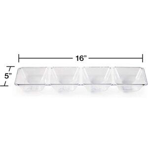 NWT Set of 2 Creative Converting 4 compartment Serving Trays. Clear with 4 separated holding areas for sauces condiments relish vegetables onions and more. Can be used as storage drawer organizers for office supplies including paper clips rubber bands, planting seeds, garden and more! Preschool and childcare uses include slime, paints, arts and crafts bead holder. Set of 2 new with tags and never used. Home decoration new home owner housewarming gift idea. bridal party wedding reception union Thanksgiving dinner feast.