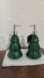 Set of two green glass soap dispensers shaped like Christmas trees. Perfect for holiday decor.