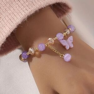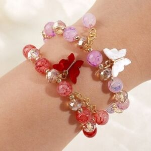 NWT (Set of 2) Purple & Pink Butterfly Fashion Charm Bracelets