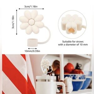 Straw Cover Cap for Stanley Cup, 3Pcs Flower Silicone Straw Toppers Accessories Compatible with Stanley Cup 30&40 Oz Tumbler, Straw Tips Lids for Home and Party Decor (Beige)