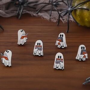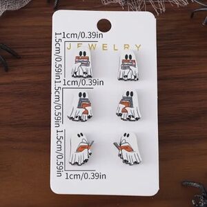 NWT! Set of 3 Pairs of Pierced Post Earrings! Ghosts Holding Orange Books!