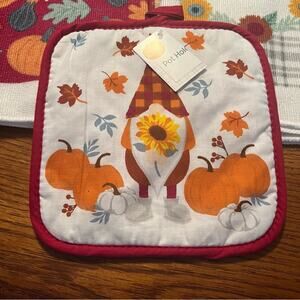 NWT Set of 3 Pieces Kitchen Dish Towels & Pot Holder Fall Gnome Pumpkins