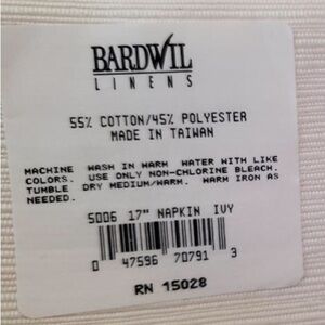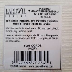linen textured Ivory placemats and napkins.. COTTON AND POLYESTER MACHINE WASH AND DRY.