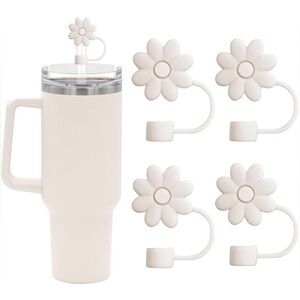 Flower Straw Covers Toppers for Stanley Cups 30&40 Oz Tumbler Accessories 4PCS Silicone Straw Caps Reusable Straw Tips Protectors for Stanley Cup 10mm 0.4in Straws,Off White