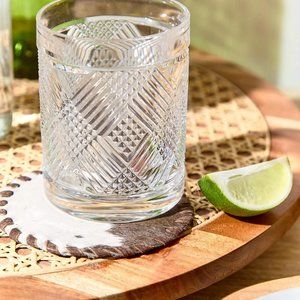 Protect surfaces with natural cowhide coasters. The natural non-slip backside will keep drinks in place. Hand stitched leather braided edge adds the perfect detail.