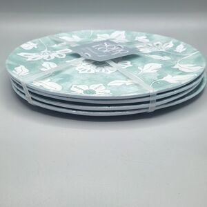 NWT Set of 4 Soho Loft Sage Green Floral Melamine Salad Plates 9 Inch Textured